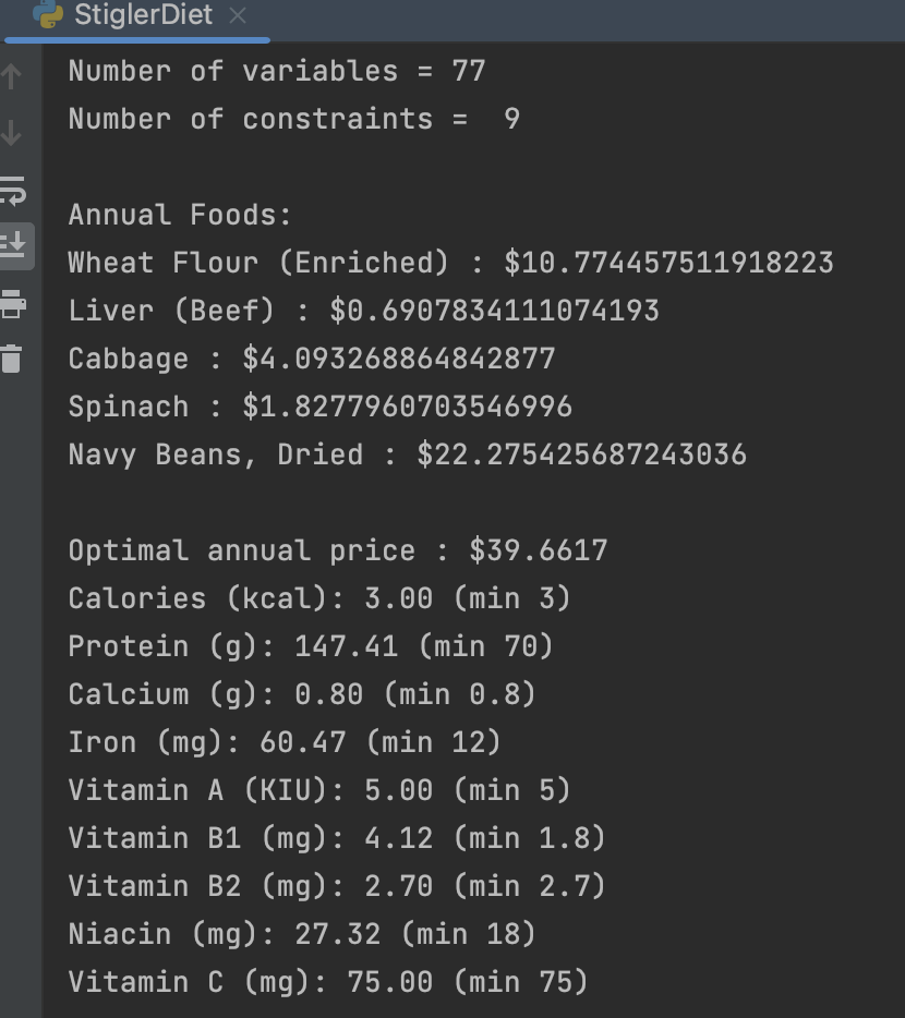 Stigler diet 문제 푸는 과정을 살펴보자.